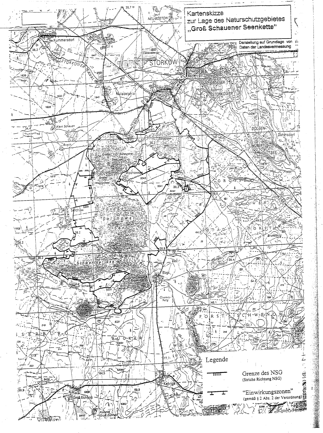 Titel: Topografische Karte zur Verordnung über das Naturschutzgebiet „Groß Schauener Seenkette“ |